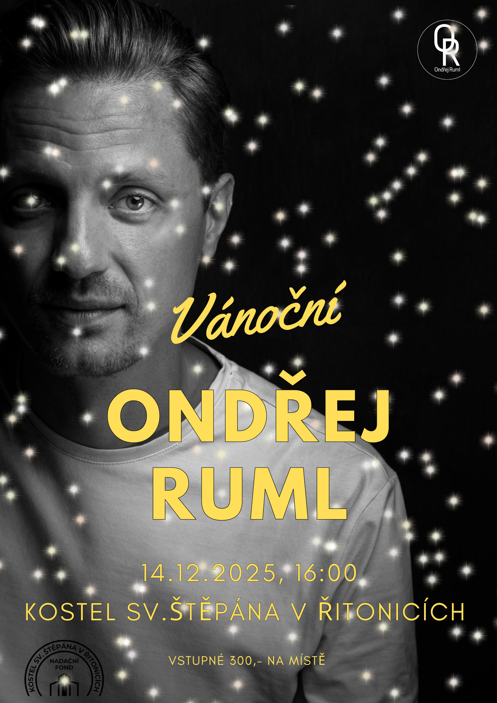 V neděli 14.12. 2025 se na vás těšíme v Řitonicích, předvánoční koncert Ondřeje Rumla v kostele sv. Štěpána začíná v 16.00 hodin (vstupenky se prodávají na místě od 15.00 hod.), připraven je řitonický betlém i malé předvánoční občerstvení.
